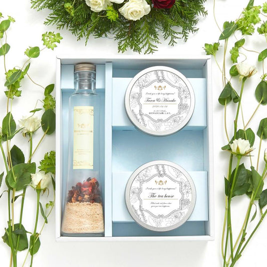 ハーブギフト 手作りハーブビネガーキット ストロベリー&ローズヒップ+ハーブティー2缶×2 【結婚式 ギフト 食品 引き菓子】