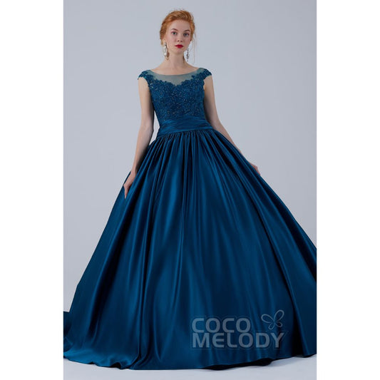 CW2106 プリンセス ボートネック サテン レース カラードレス 【結婚式 カラードレス オーダーメイド】