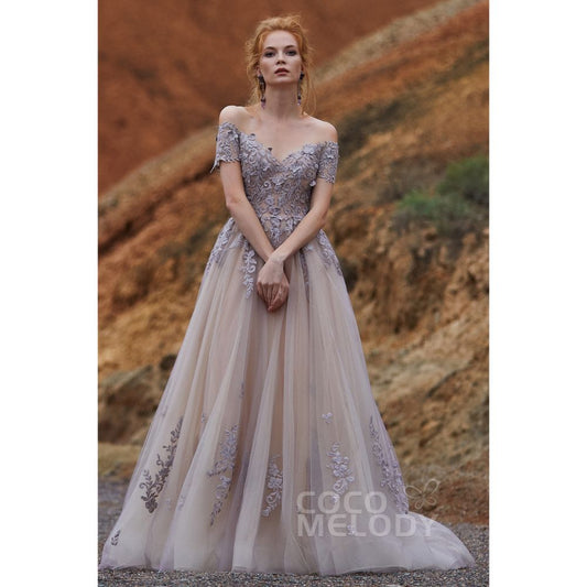 LD5830 オフショルダー Aライン 4色展開 ウェディングドレス 【結婚式 カラードレス】