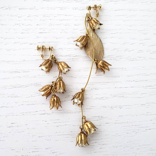すずらんヴィンテージゴールドイヤリング 【結婚式 ピアス イヤリング レンタル】