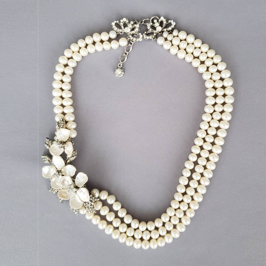Siman Tu シェル3連パールネックレス 【結婚式 ネックレス レンタル】