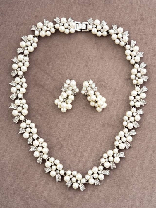 アンテイラー☆リボンモチーフパールネックレスピアスセット 【結婚式 ネックレス レンタル】