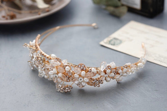 【レンタルヘッドセット】小枝ビジュー/ピンクゴールド【結婚式 ヘアアクセサリー レンタル】