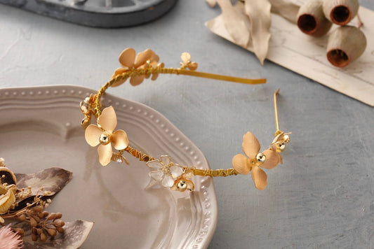 小枝ビジューカチューシャ ゴールドヘアパーツ ウェディングジュエリー 小枝ビジュー 袴 振袖 成人式 ヘアドレス ヘアパーツ【結婚式 ヘアアクセサリー】