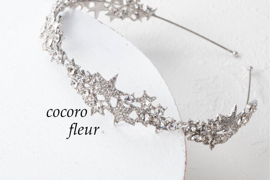 クリスタルスターヘアバンド ラインストーン ヴィンテージブライダル ティアラ クラウン ウェディングアクセサリー ジュエリー ヘアパーツ 小枝ビジュー【結婚式 ヘアアクセサリー】