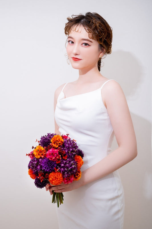 【レンタルブーケ】ポピーラウンドブーケ【結婚式 フラワー 造花 ブーケ ブートニア レンタル】