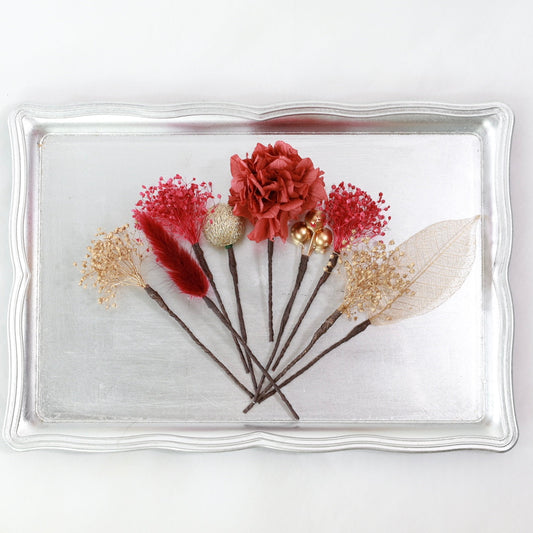 髪飾り シルバーレッド【ヘアアクセサリー 花 ドライフラワー プリザーブド】 【結婚式 ヘアアクセサリー】