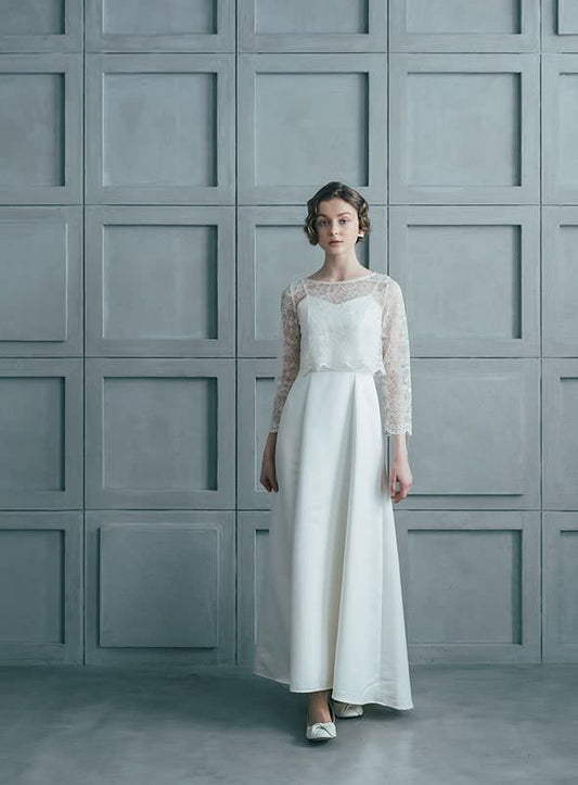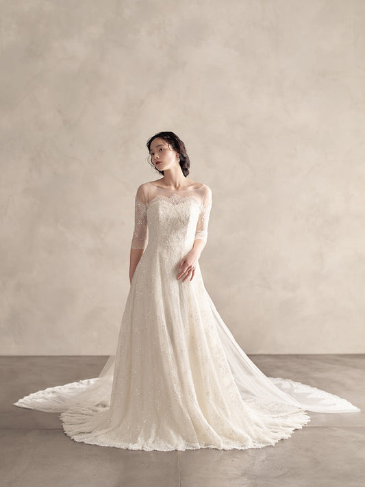 Panna パンナ【ウエディングドレス レンタル】Aライン フレンチスリーブ イリュージョン 【結婚式】