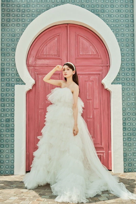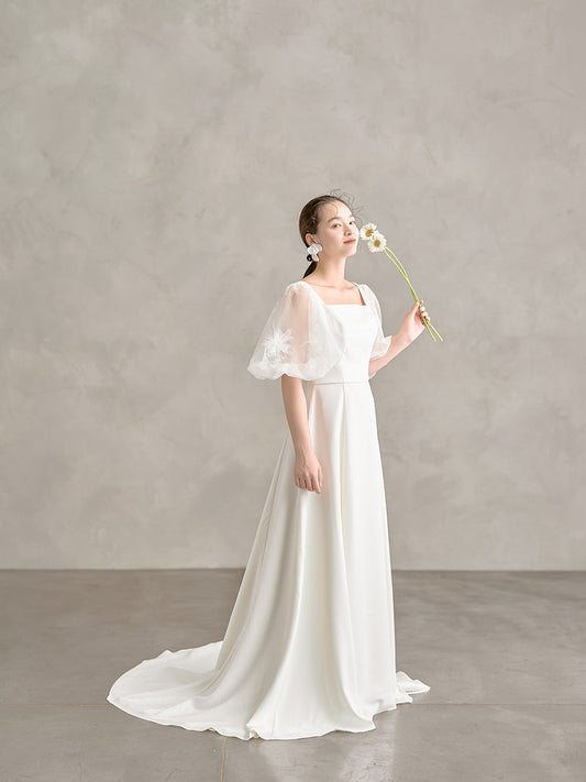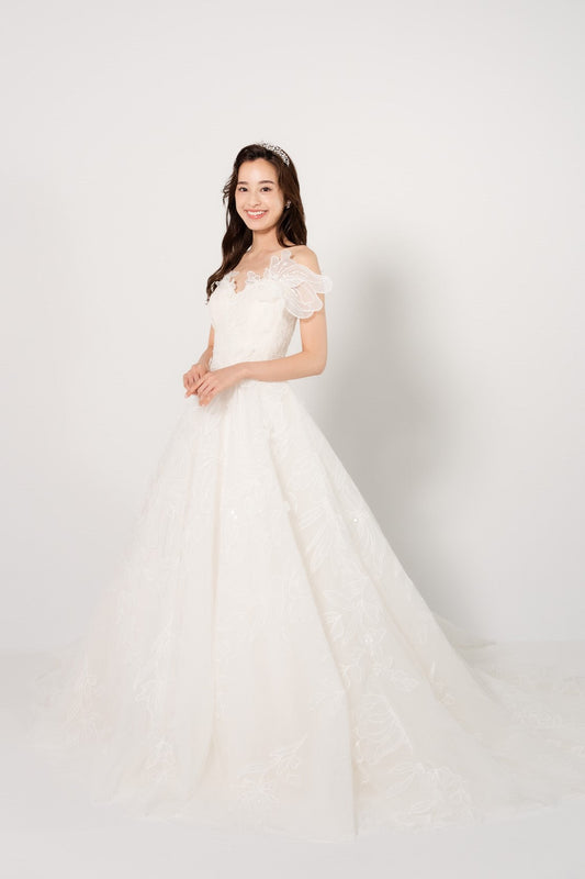 Mihi ミヒ【ウェディングドレス レンタル】韓国ドレス/LEMERE フラワーモチーフ Aライン【結婚式】