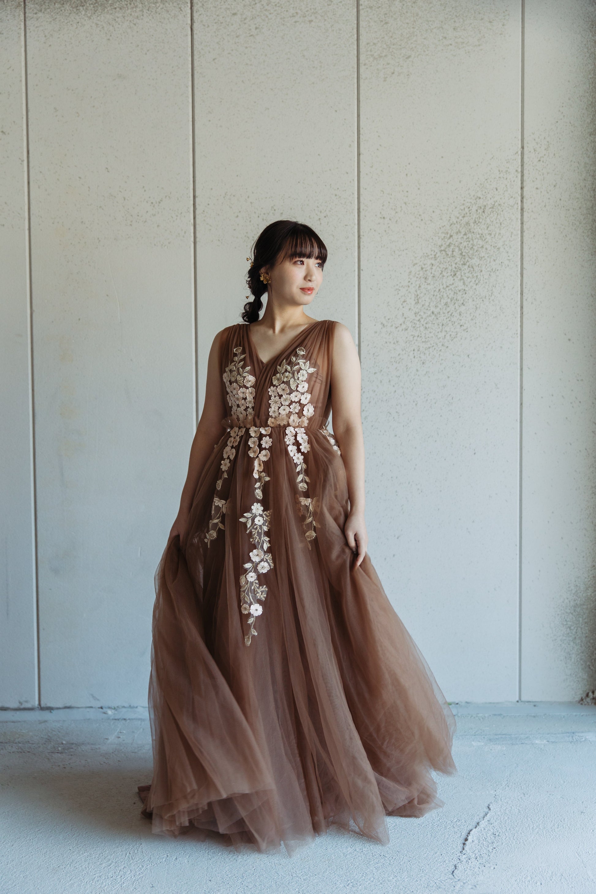 カラードレス/9102500/ ブラウンカラーAライン 【カラードレス】