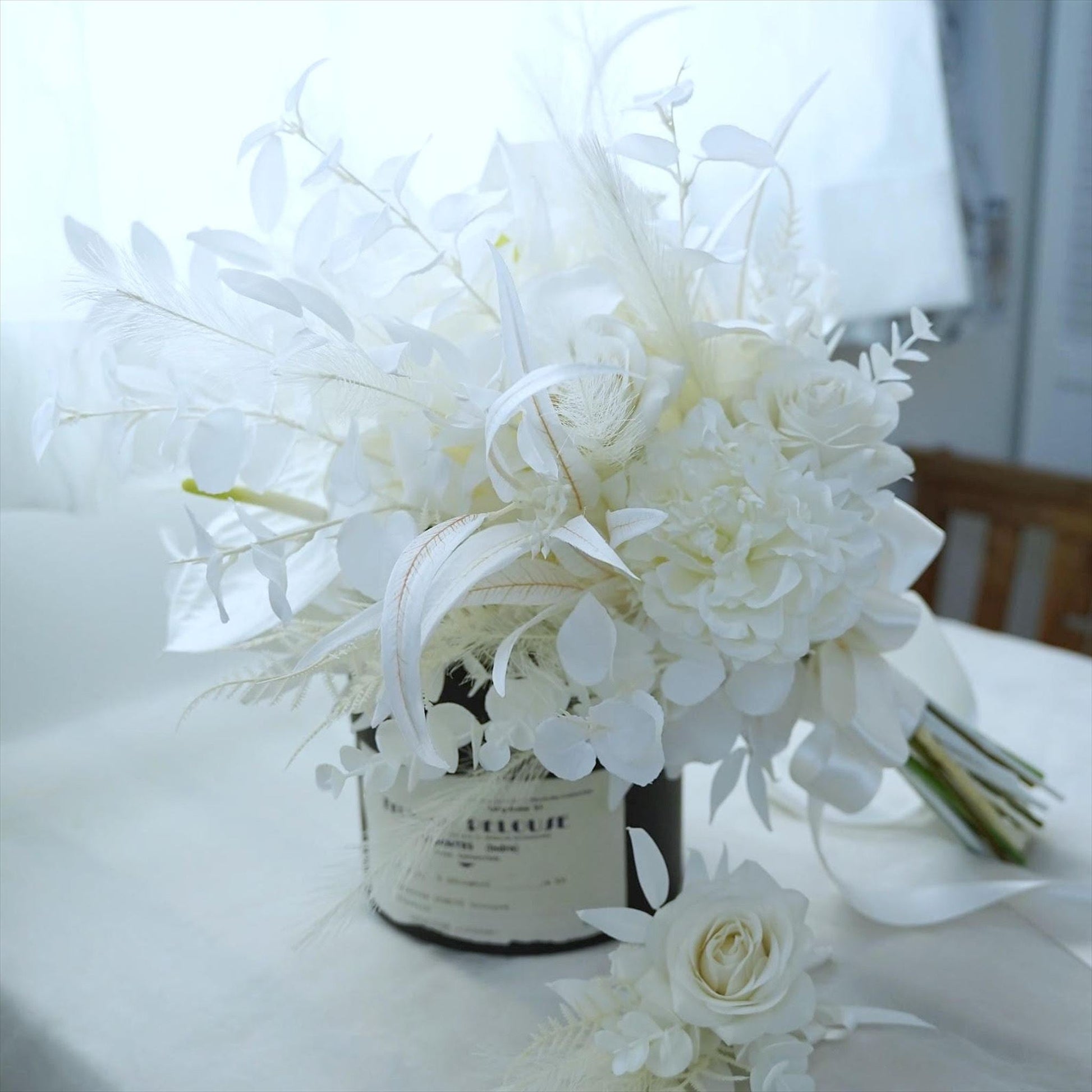 ホワイトリーフのブーケ【結婚式 フワラー アーティフィシャルフラワー ブーケ ブートニア】