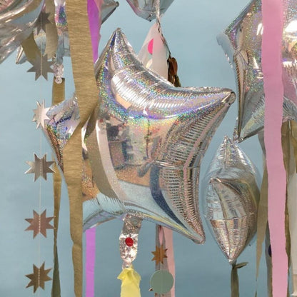 天井からたくさん吊るすとフォトブース用のバックドロップに、
