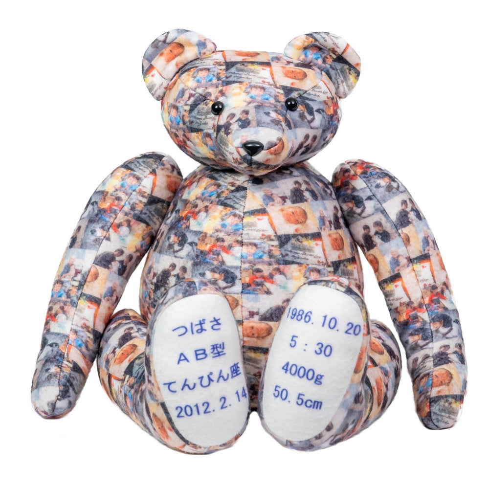 新郎新婦が生まれたときの体重と同じ重さで作り、思い出の詰まったお写真をベア全面にプリントした世界に1つだけのぬいぐるみ。