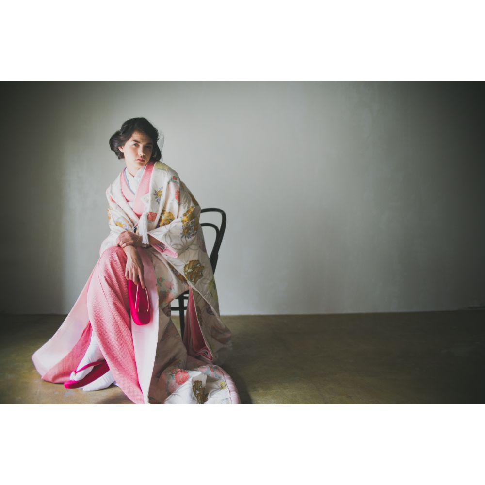 白地七宝花丸紋 【結婚式 和装 色打掛 レンタル】