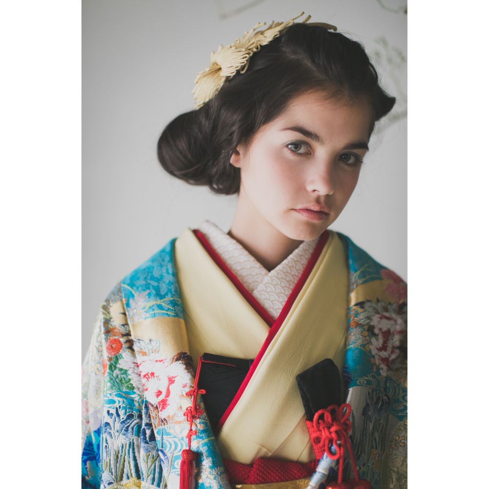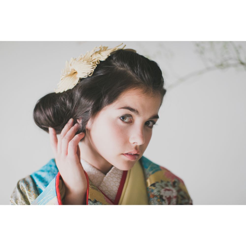 半襟や帯に金色を合わせることで、お着物を一段と華やかに見せます。