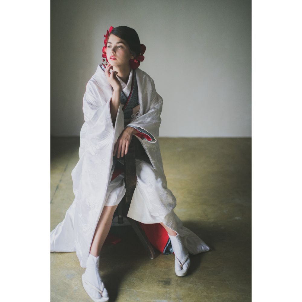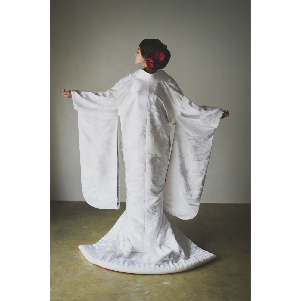 古典的な文様が描かれた密の細かい刺繍の白無垢は、