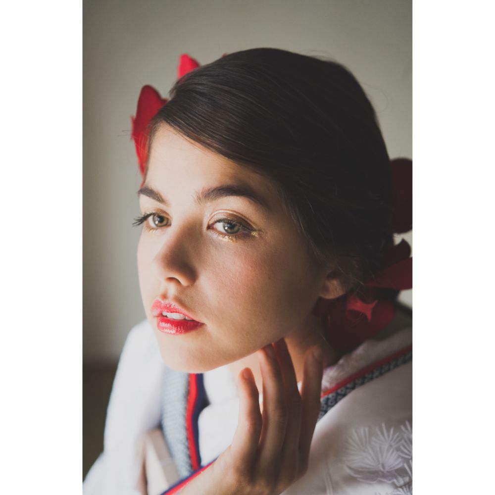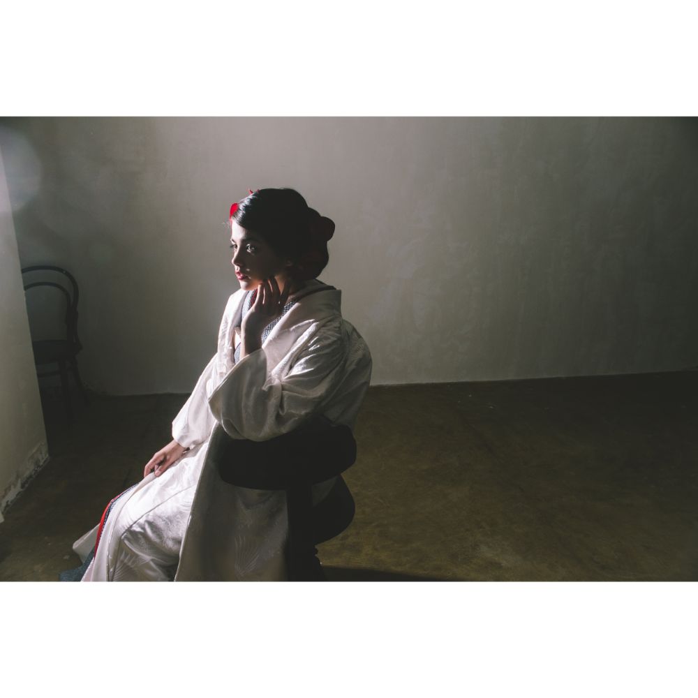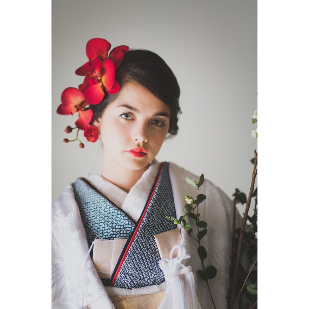 王道の花嫁さまらしさを残しつつも、紺の総絞りに赤を効かせ