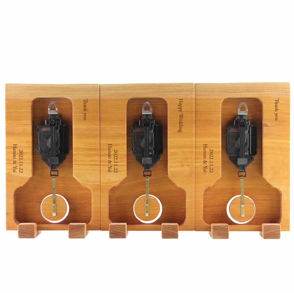 【木目でつながる3連時計】 振り子時計 ケヤキ 立体文字盤タイプ 【結婚式 ギフト 両親プレゼント 時計】