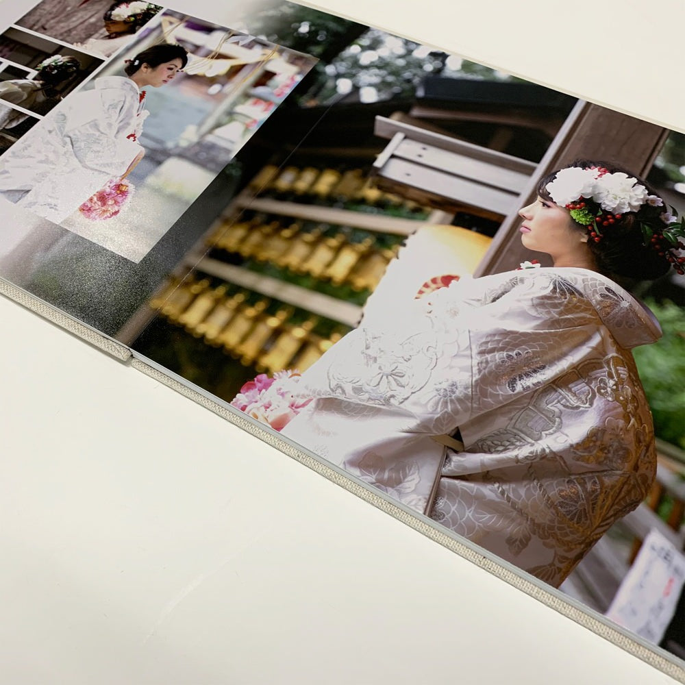 カジュアルでナチュラルな麻布表紙、中面は銀塩写真を使用したフォトアルバムになります。