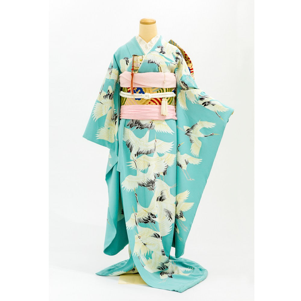 アンティーク復刻振袖 浅葱色地/飛翔鶴 【結婚式 和装 引き振袖 レンタル】