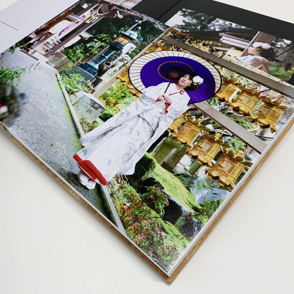 ウォールナット無垢材の表紙、中面は銀塩写真を使用したフォトアルバムになります。