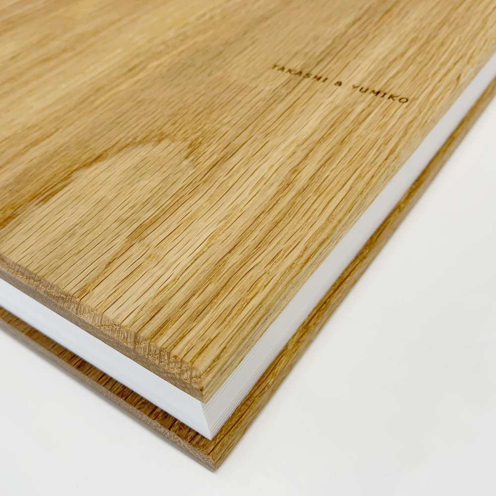 オーク無垢材の表紙、中面は銀塩写真を使用したフォトアルバムになります。