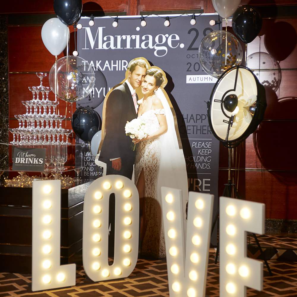 「MODE」スタイルのフォトスポットは、海外セレブたちのパーティのような雰囲気。いつもよりドレスアップした結婚式当日だからこそ、大切な方々とのオシャレで楽しい記念写真を残してください!
