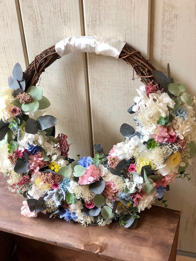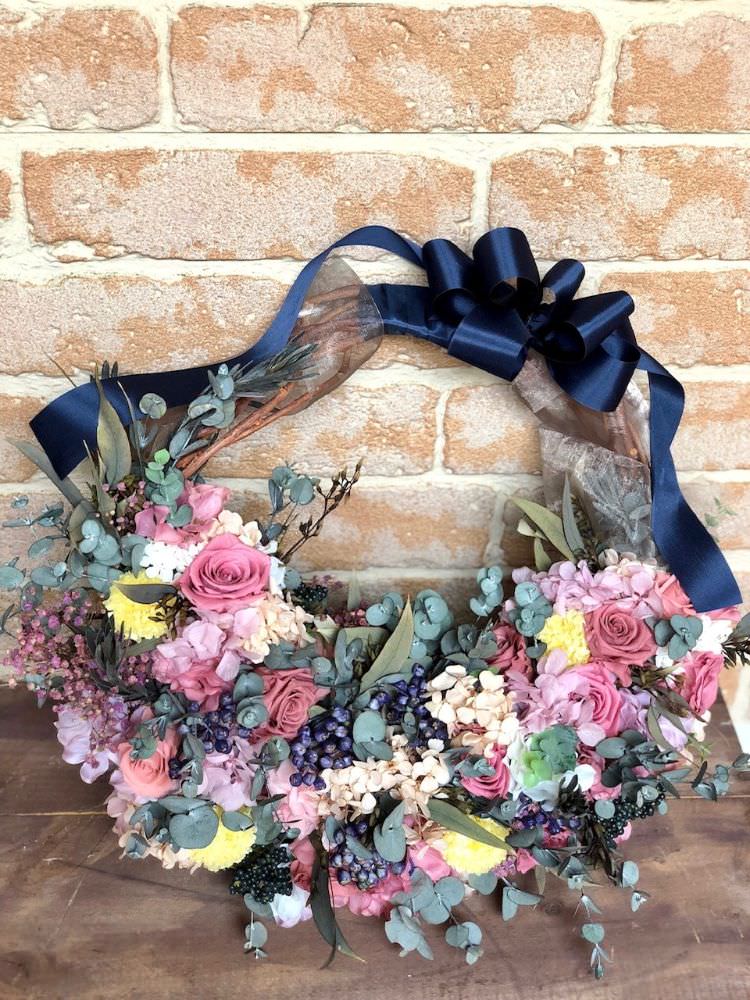 プリザーブドフラワーのリースブーケ