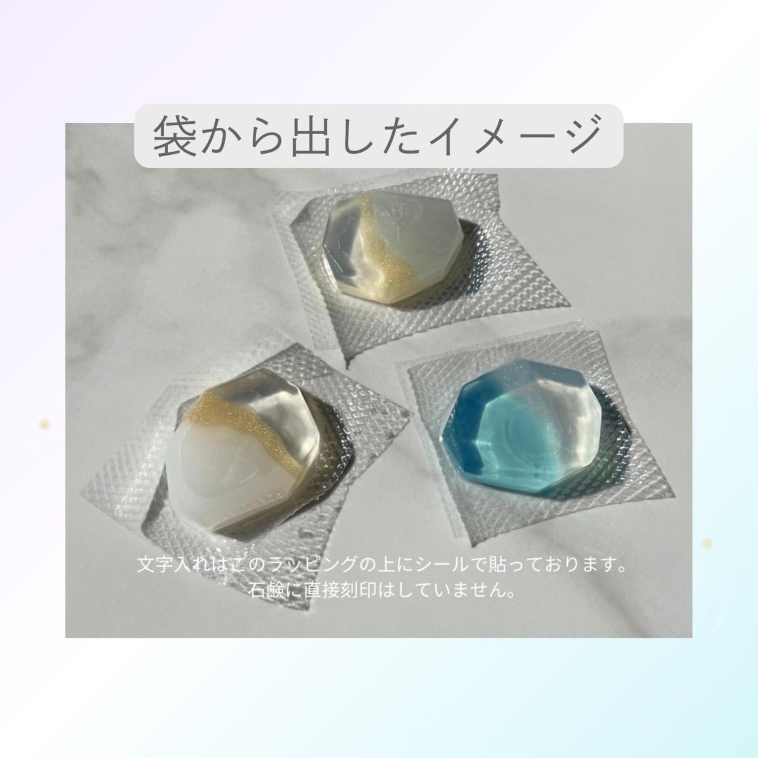 ・石鹸は透明フィルムに包んでお届け