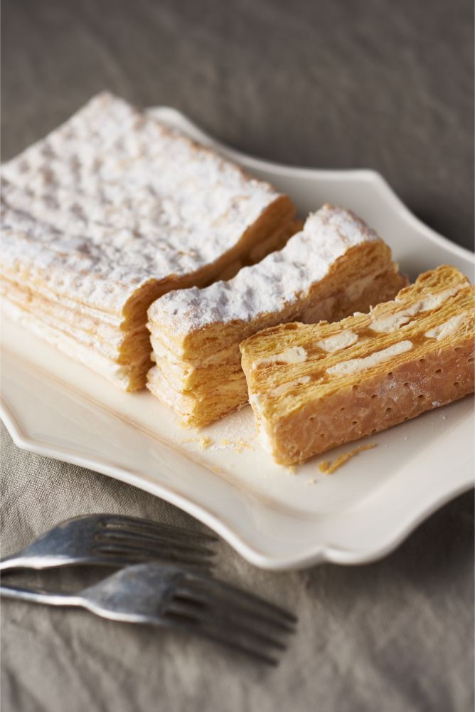 薄いパイ生地を重ねて作ったサクサク生地の間に濃厚なチーズクリームがたっぷり。