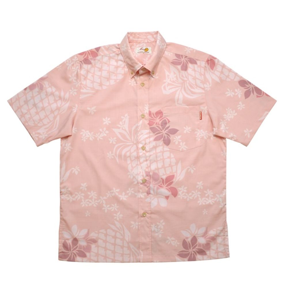 パインの大柄とプルメリアをポップに表現。南国気分をあじわえる一着!