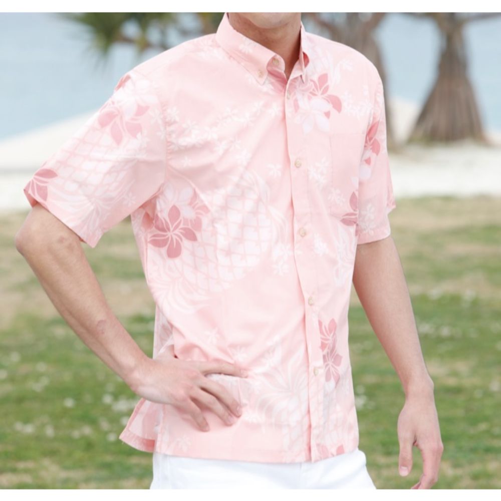 レンタルかりゆしウェア Men's パインプルメリア ピンク 【結婚式 ブライズメイド アッシャー レンタル】