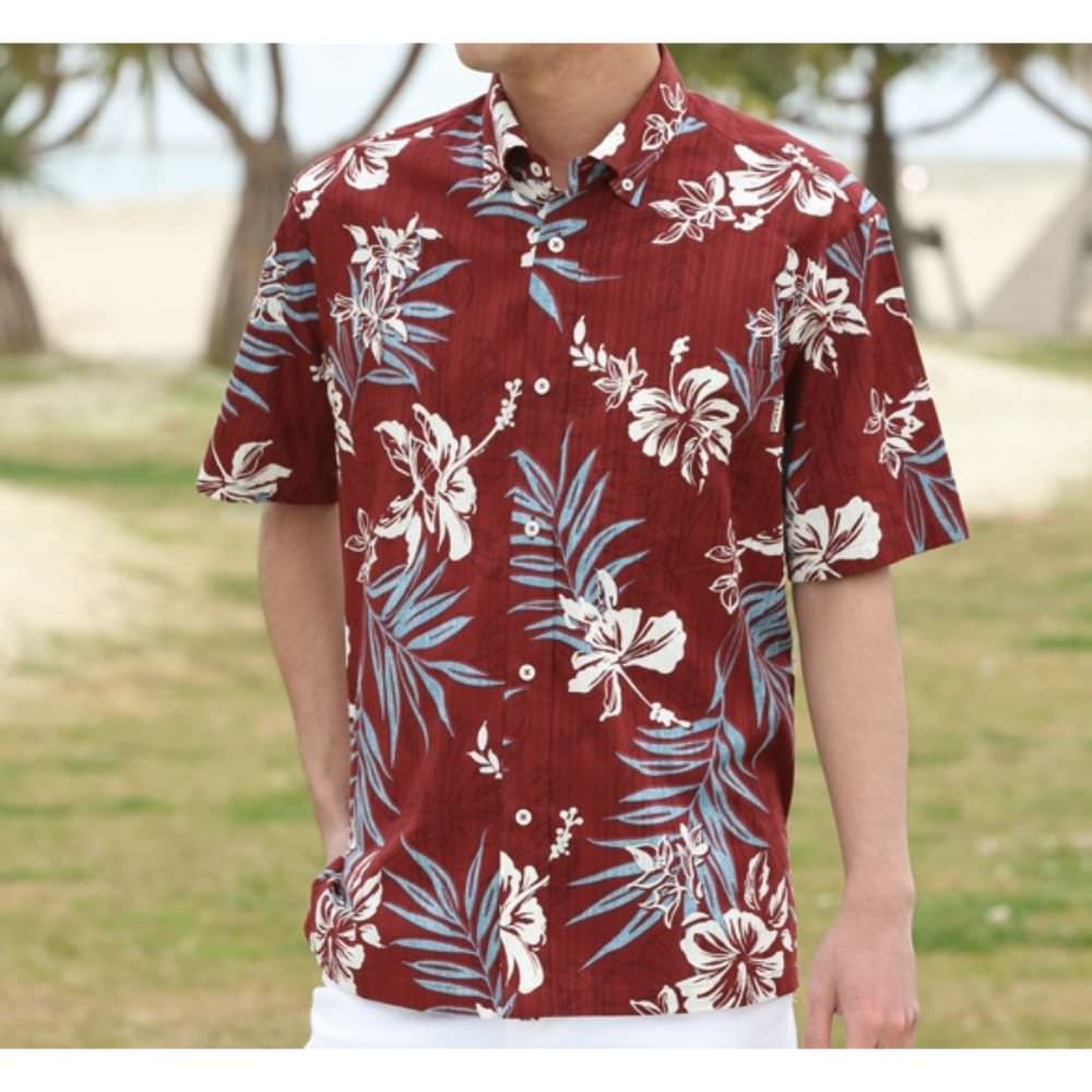 レンタルかりゆしウェア Men's ハイビ―リーフ レッド 【結婚式 ブライズメイド アッシャー レンタル】