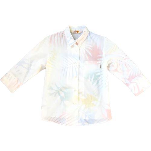シダの葉とモンステラがゆっくりと夏風にゆれ動く様子を表現しリゾートシーンやカジュアルにおすすめの一着!