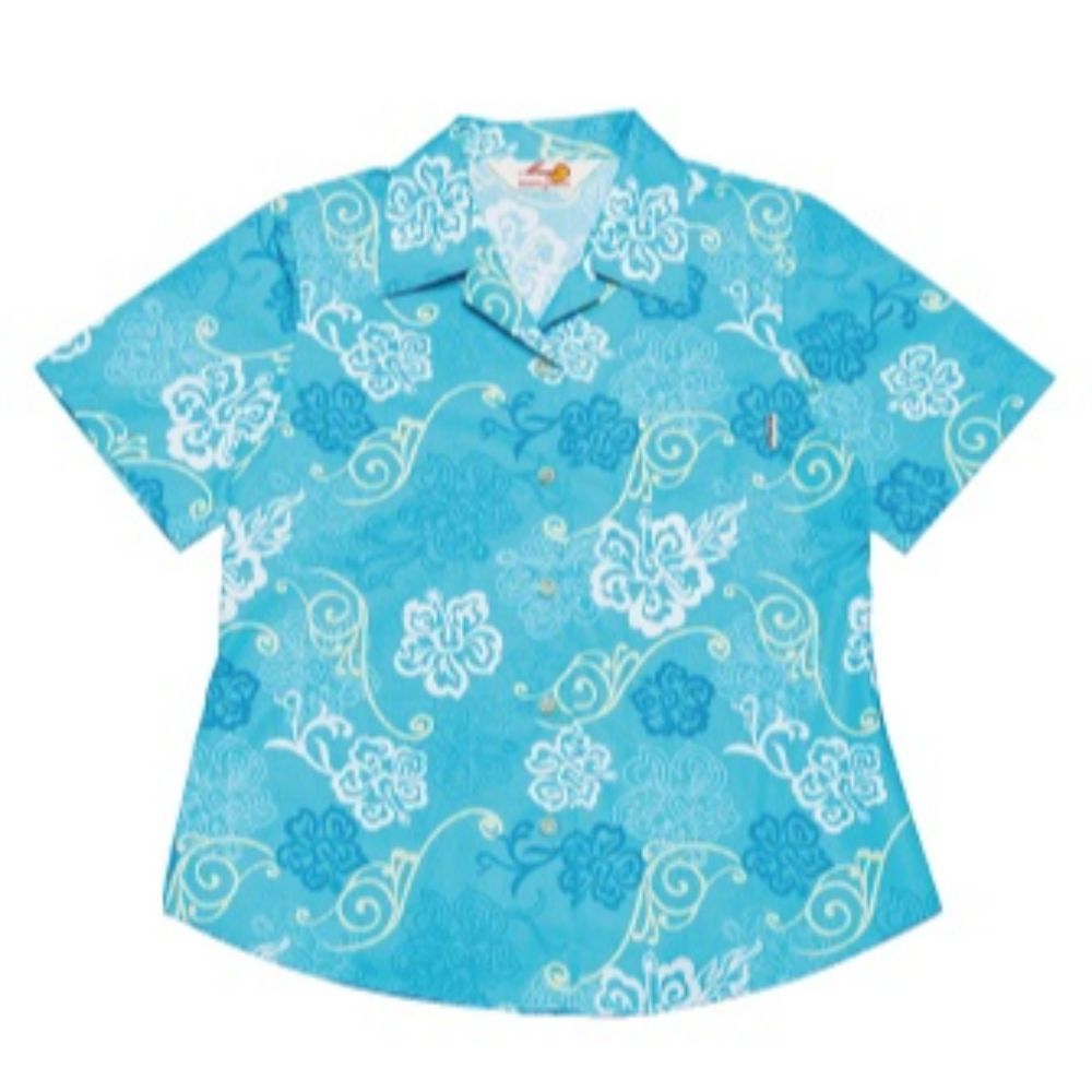 レンタルかりゆしウェア Ladies' トライバルハイビ ブルー 【結婚式 ブライズメイド アッシャー レンタル】