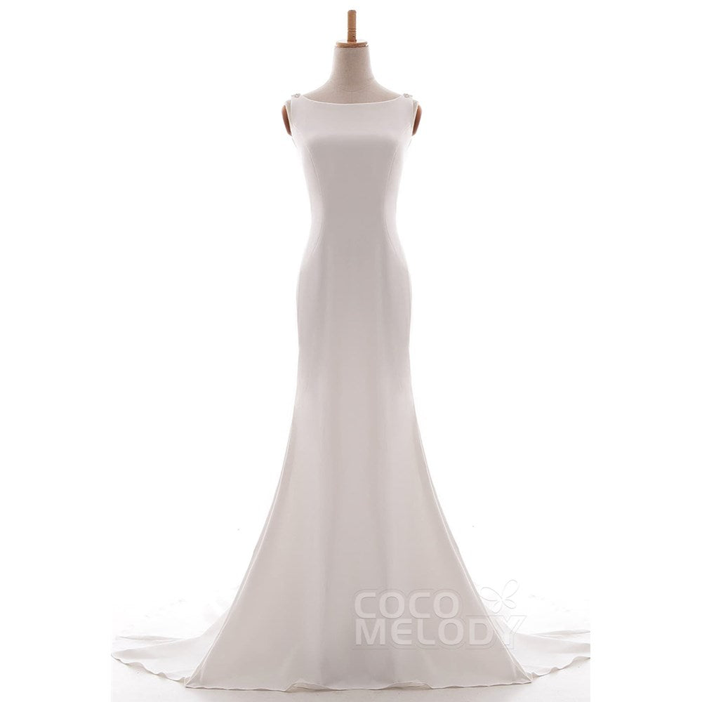 LD5237 エラスティック ファブリック ボートネック ウェディングドレス 【ウェディングドレス オーダーメイド】