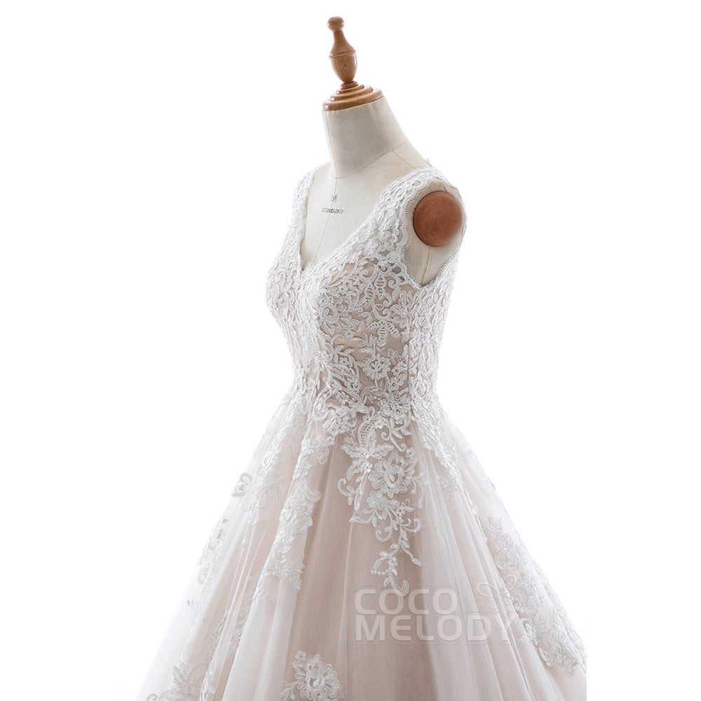 LD5565 ソフトチュール Vネック ウェディングドレス 【ウェディングドレス オーダーメイド】