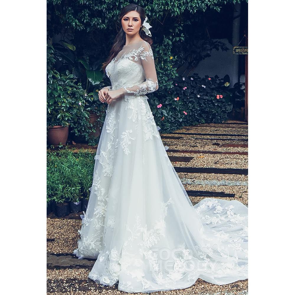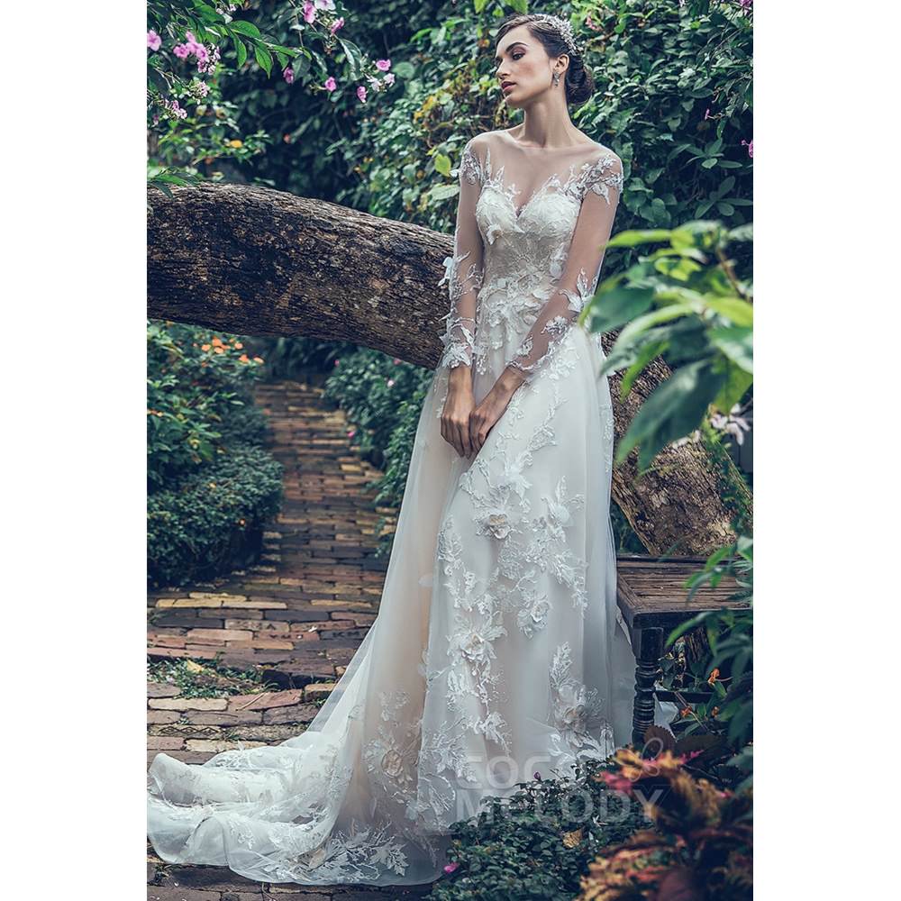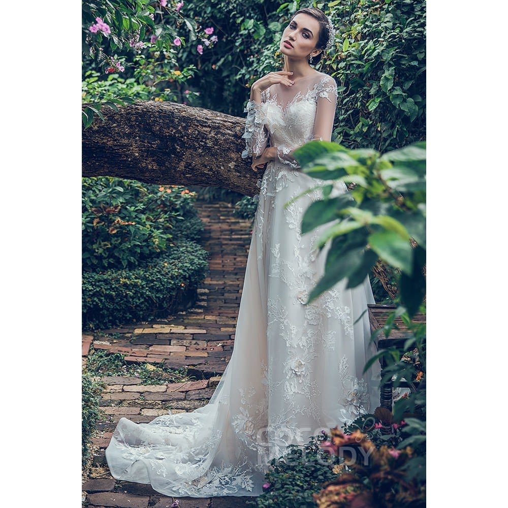 LD5713 チュール レース オーガンジー イリュージョン ウェディングドレス 【ウェディングドレス オーダーメイド】