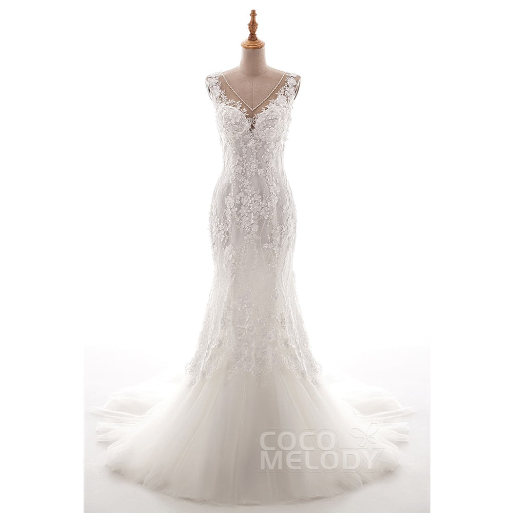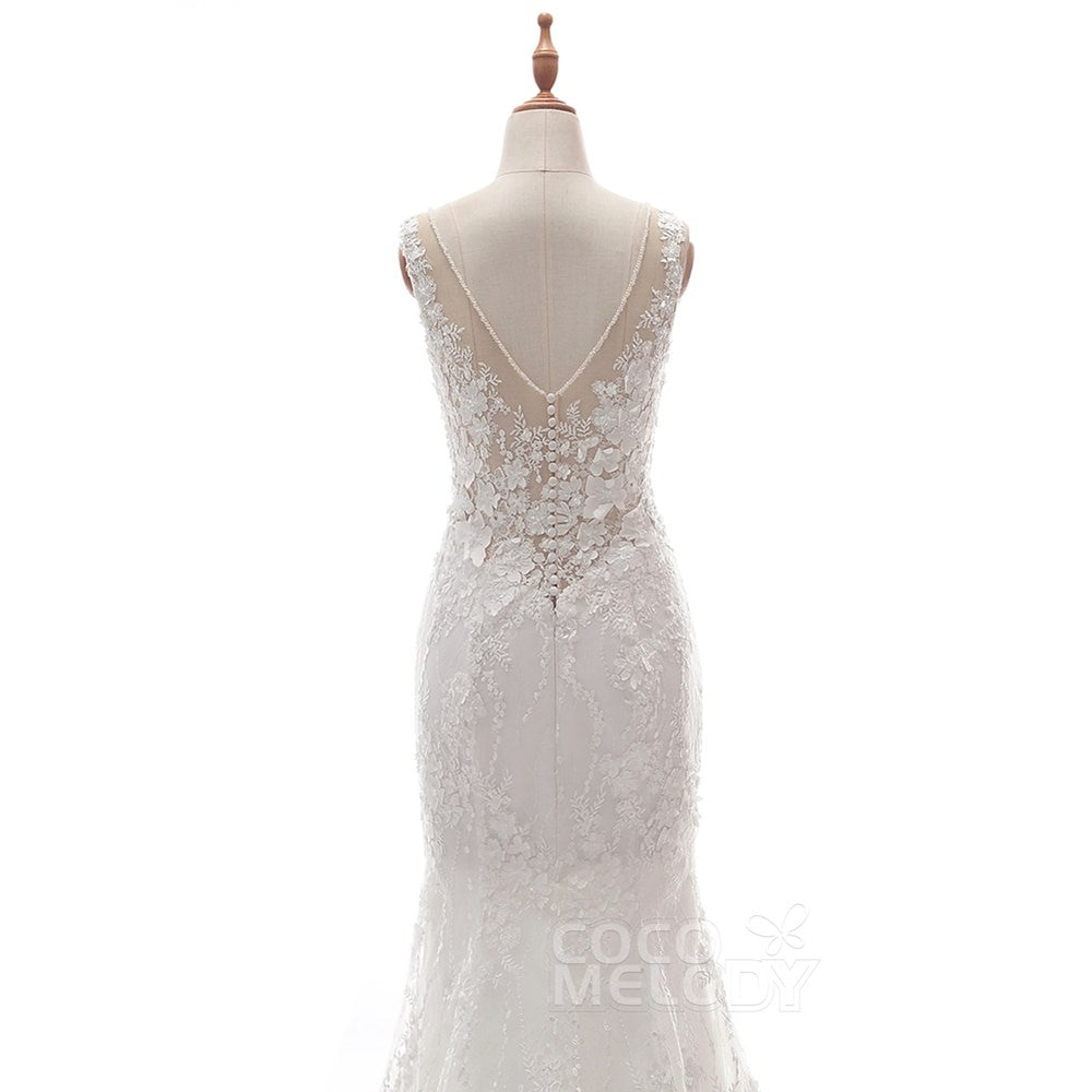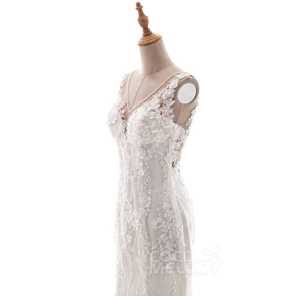 LD5058 レース Vネック ウェディングドレス 【ウェディングドレス オーダーメイド】