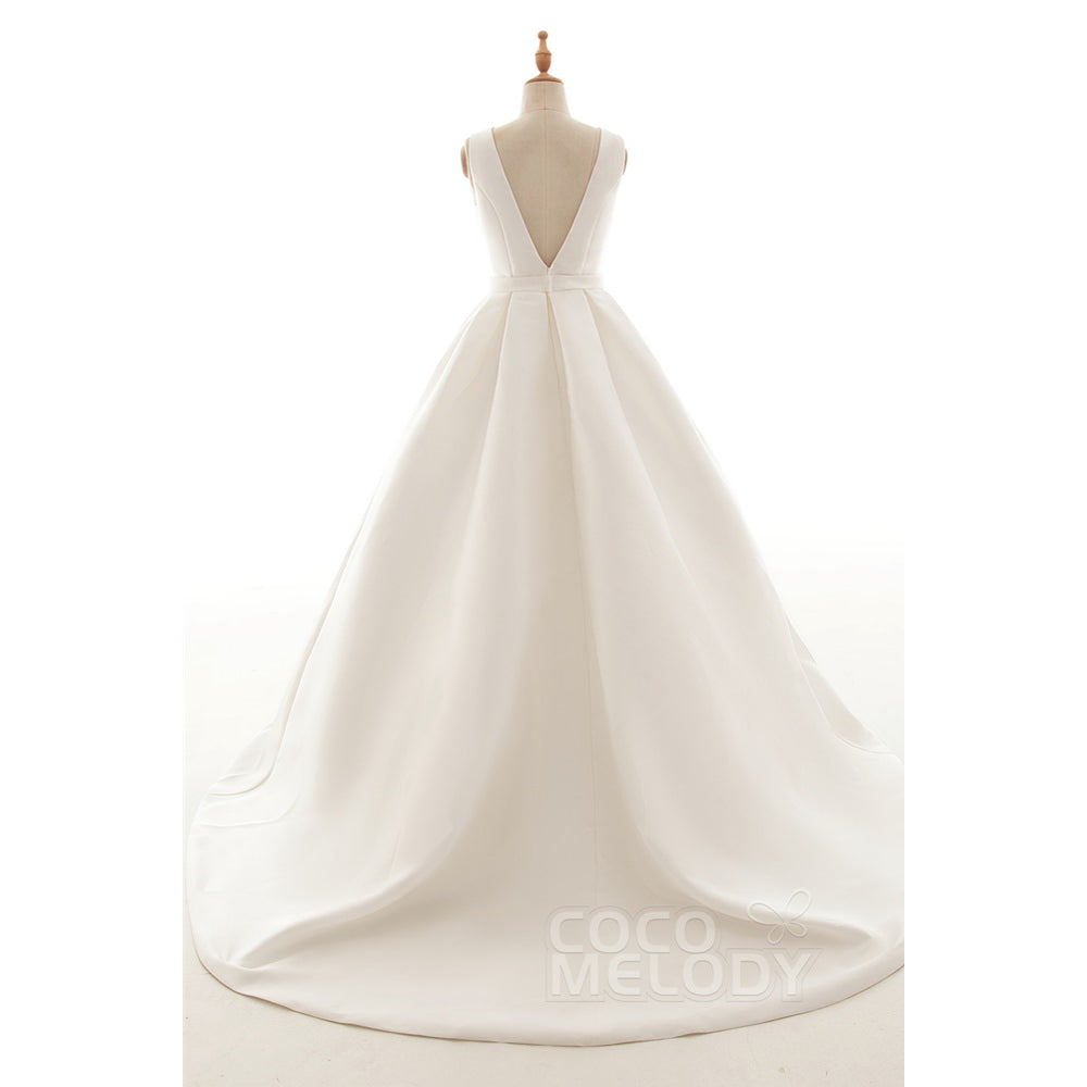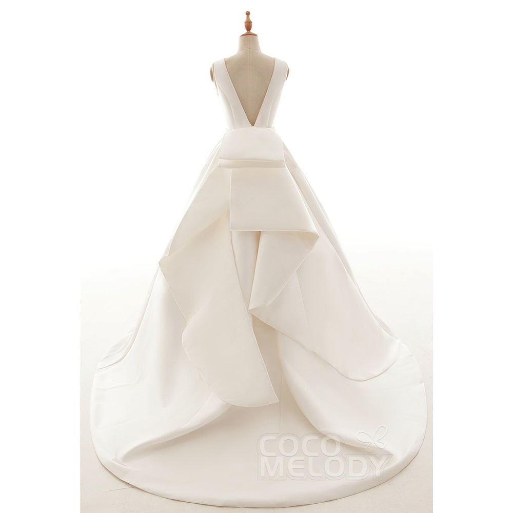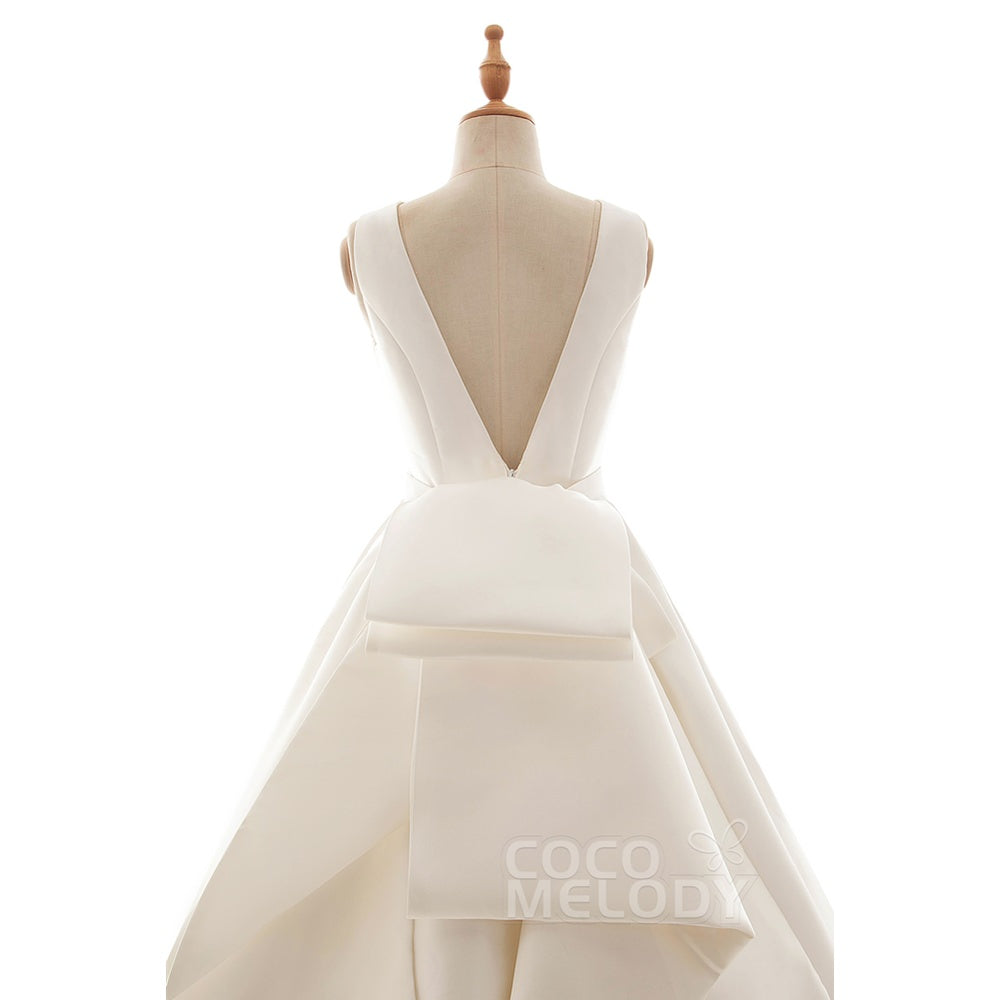 シンプルかつ清楚な印象のフロントとは一転、バックは大胆なVカットとビッグリボン。絶妙なギャップが、多くのゲストを魅了すること間違いなしのクラシカルドレスです。