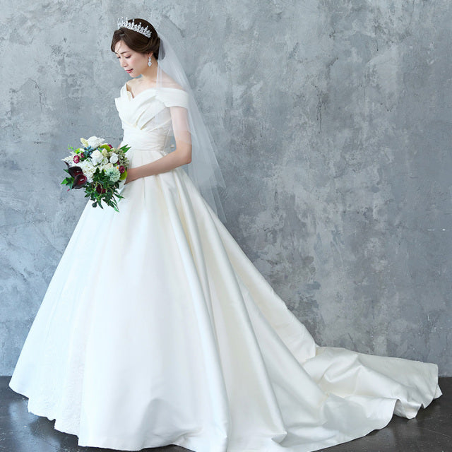 シンプルな切りっぱなしのデザインで、花嫁様やウェディングドレス、アクセサリーを最大限に引き立たせます。
