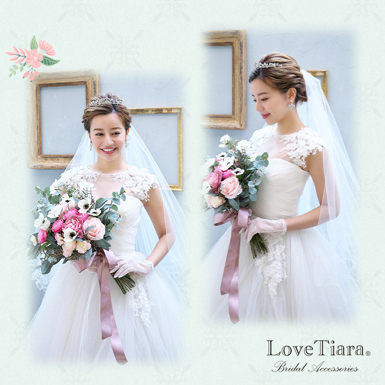 長年有名ドレスサロンのベールやウェディングアイテムを手掛ける実績のある国内アトリエとLoveTiaraが共同でお作りした、当店でしか手に入らないこだわりのベール。