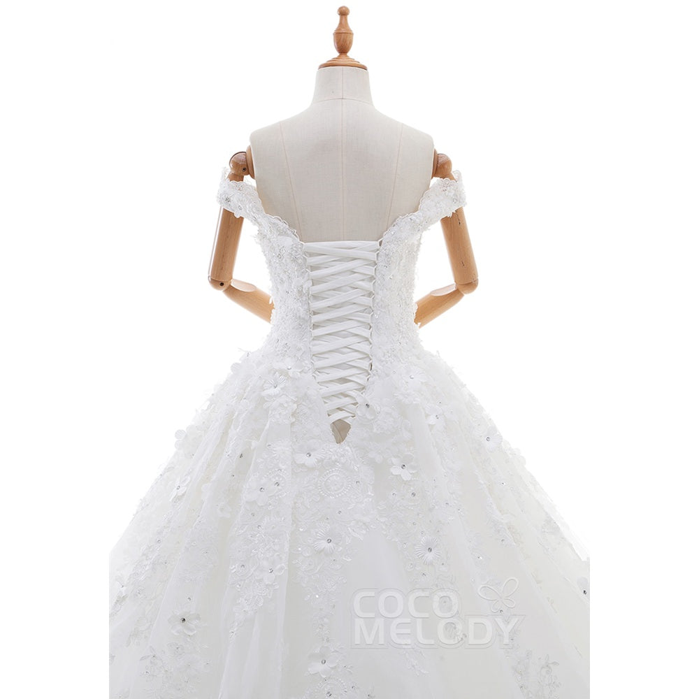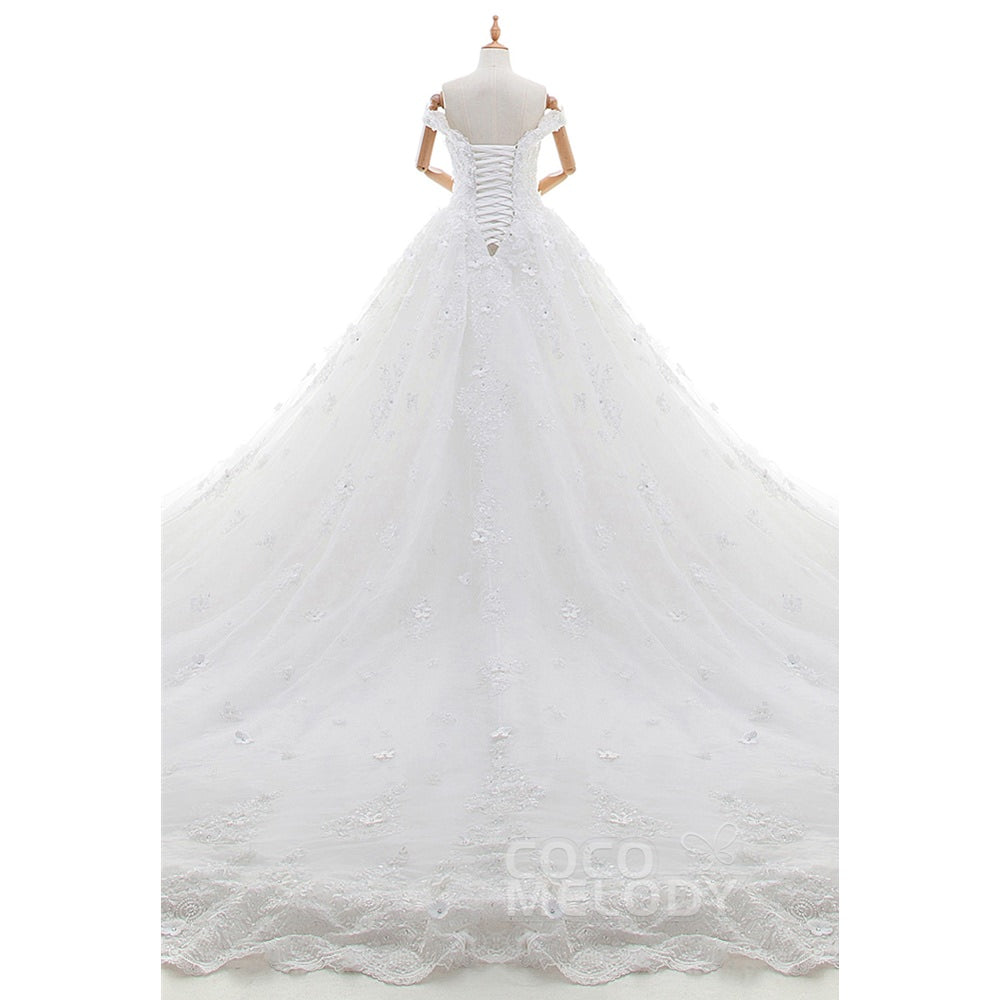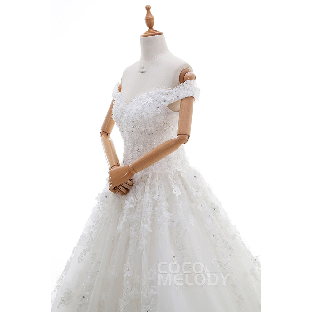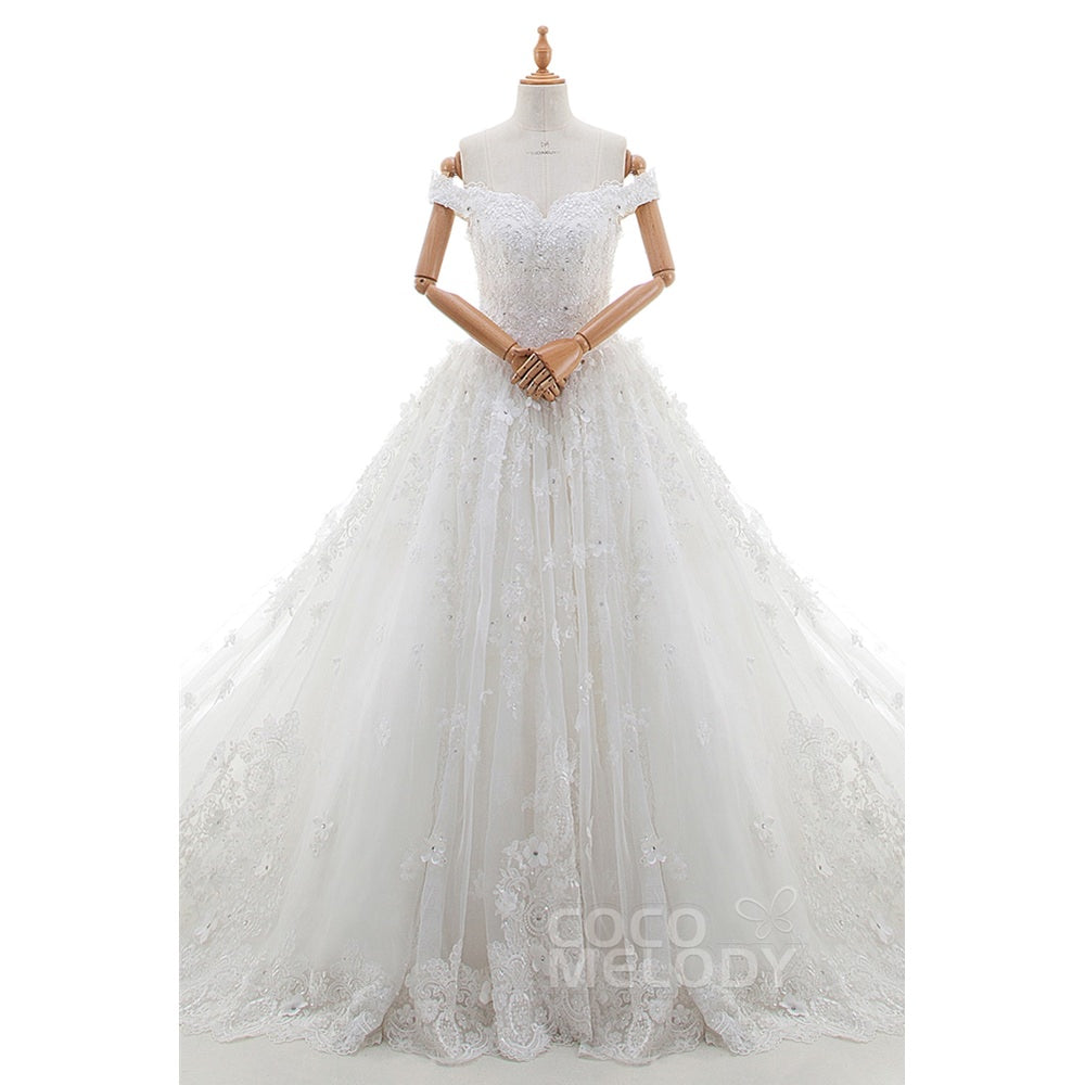 LD4349 ロングトレーン オフショルダー 豪華 ウェディングドレス 【ウェディングドレス オーダーメイド】
