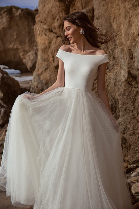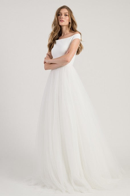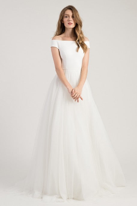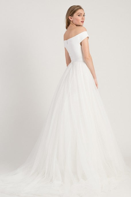 クラシックなボールガウンシルエットを取り入れたモダンなデザイン