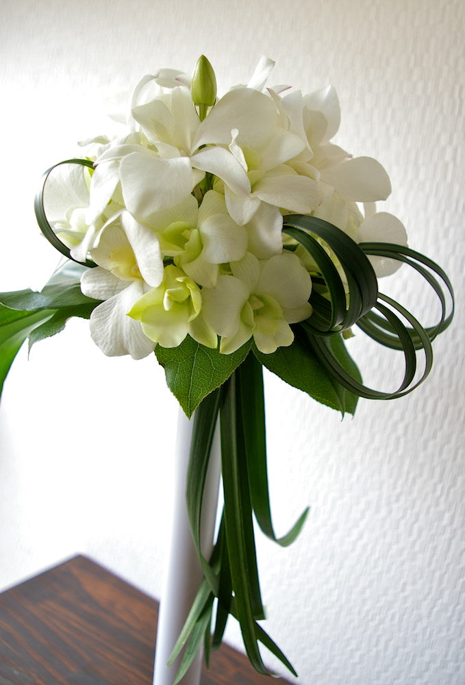 通常のラウンドブーケをスタイルやボリュームでグレードアップしたデザインラウンドブーケです。
