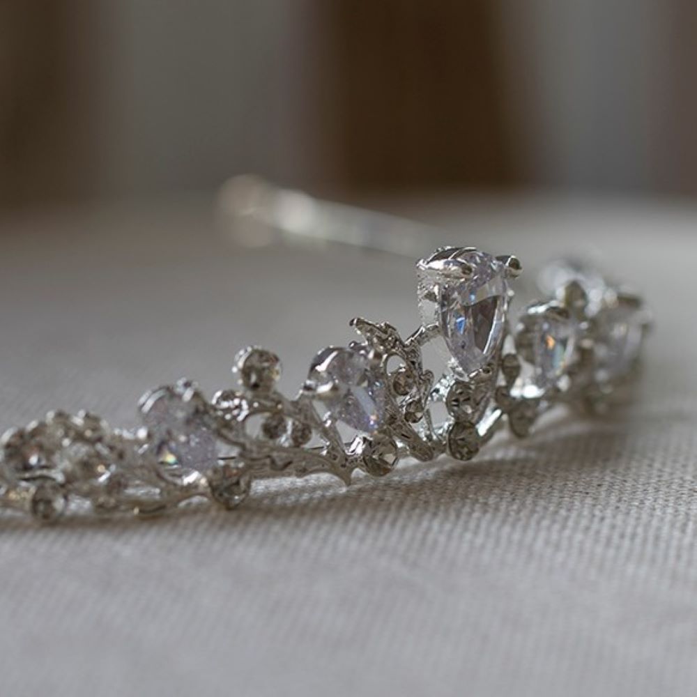 ボタニカルモチーフで高さが低めのウエディングティアラのご紹介です。