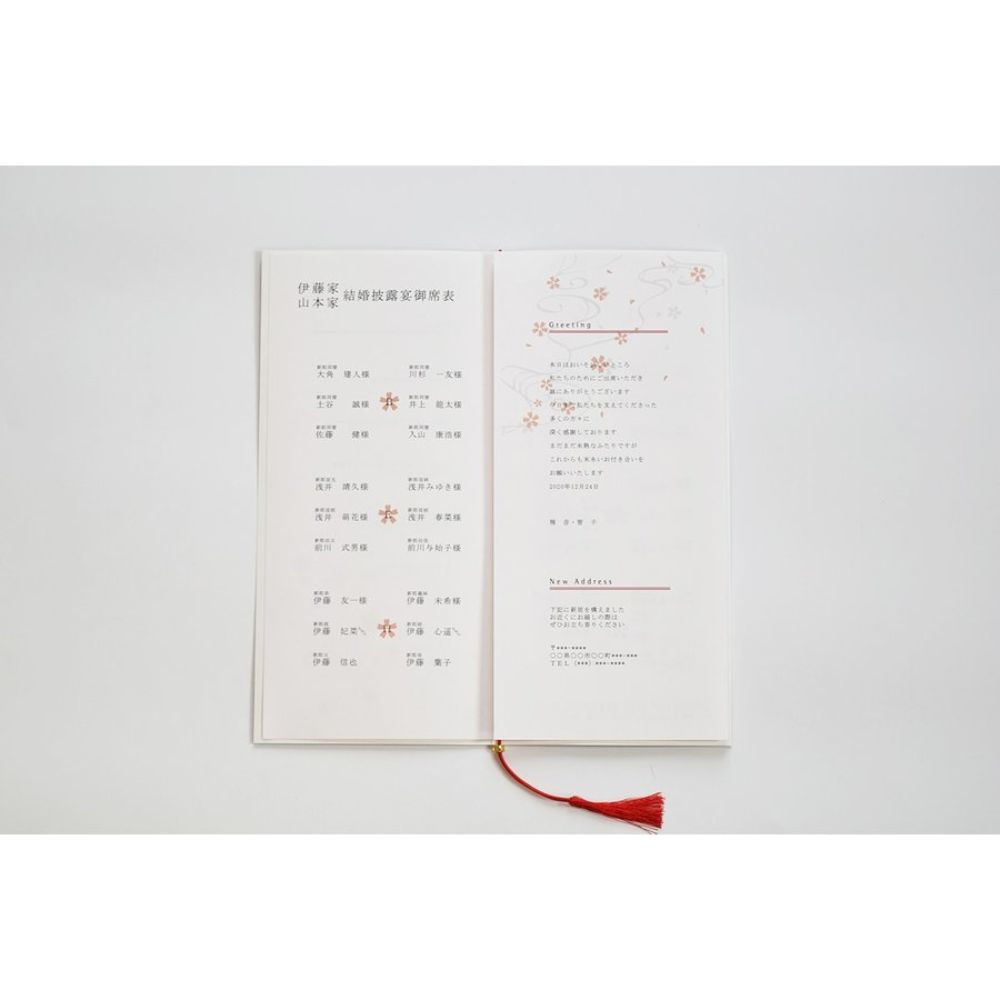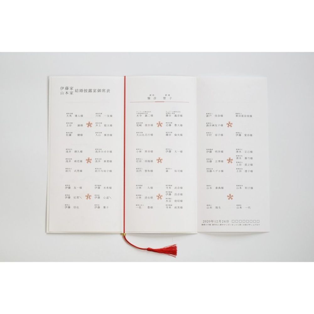 | 印刷備考 | 表面…席次表 裏面…挨拶・新居案内・メニュー・プロフィール(写真有) |
