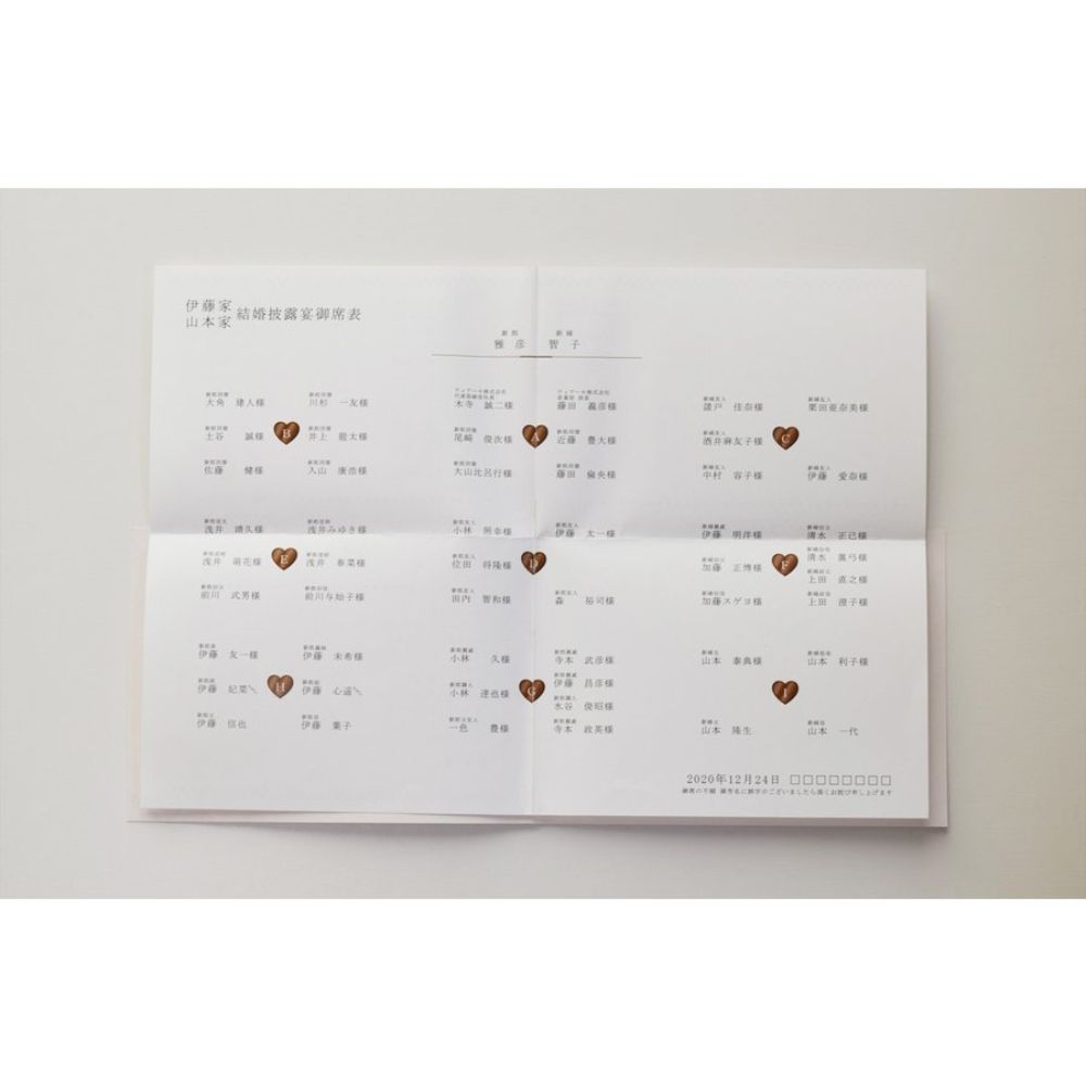 | 印刷備考 | 表面…席次表 裏面…挨拶・新居案内・メニュー・プロフィール(写真有) |