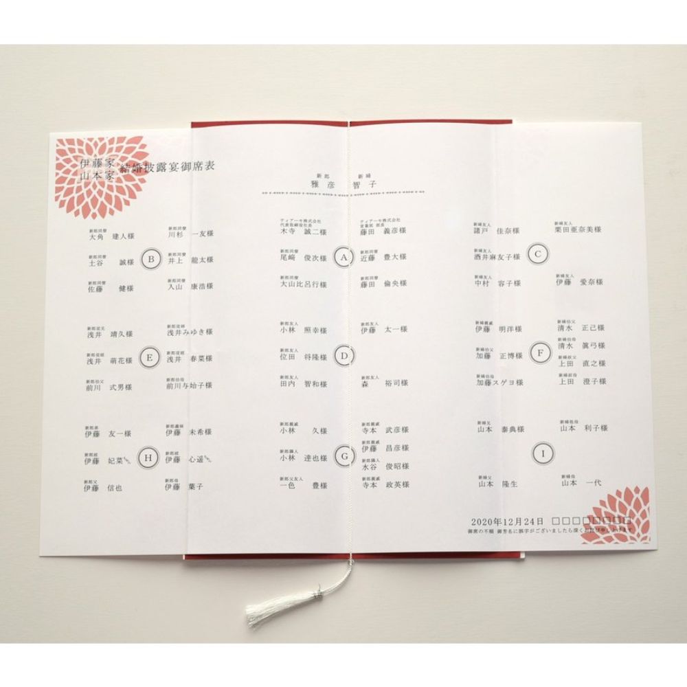 【※席次表+席札セット キャンペーン実施中※】ダリア えんじ (印刷込み)【結婚式 ペーパー 席次表】