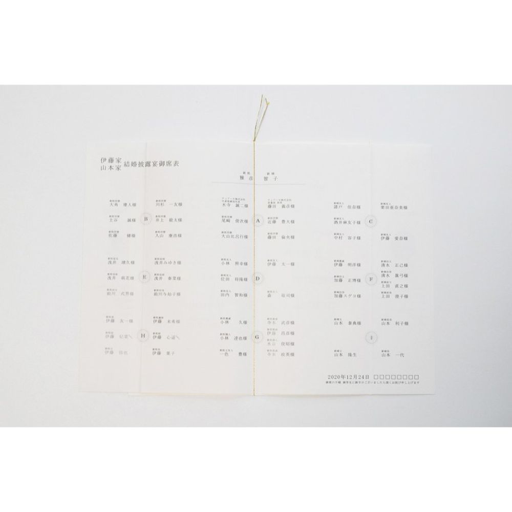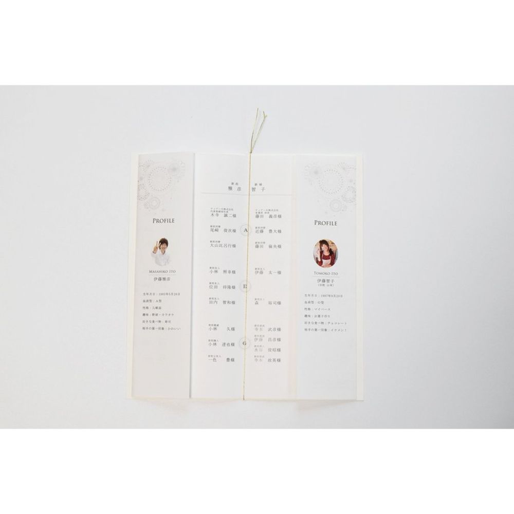 | 印刷備考 | 表面…席次表 裏面…挨拶・新居案内・メニュー・プロフィール(写真有) |